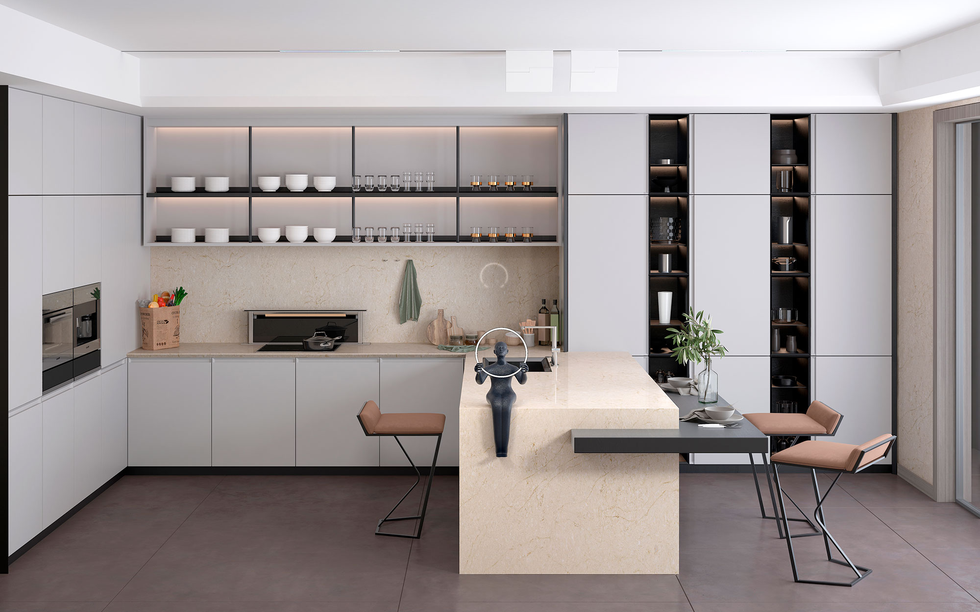 Taj Mahal Elegance is een stijlvol keukenblad met een warme, luxe uitstraling. De zachte crème basis met nuances van taupe, beige en subtiele bruine aders zorgt voor een natuurlijke en elegante look. Deze verfijnde tekening geeft het blad karakter en maakt het een populaire keuze voor zowel moderne als tijdloze keukens.