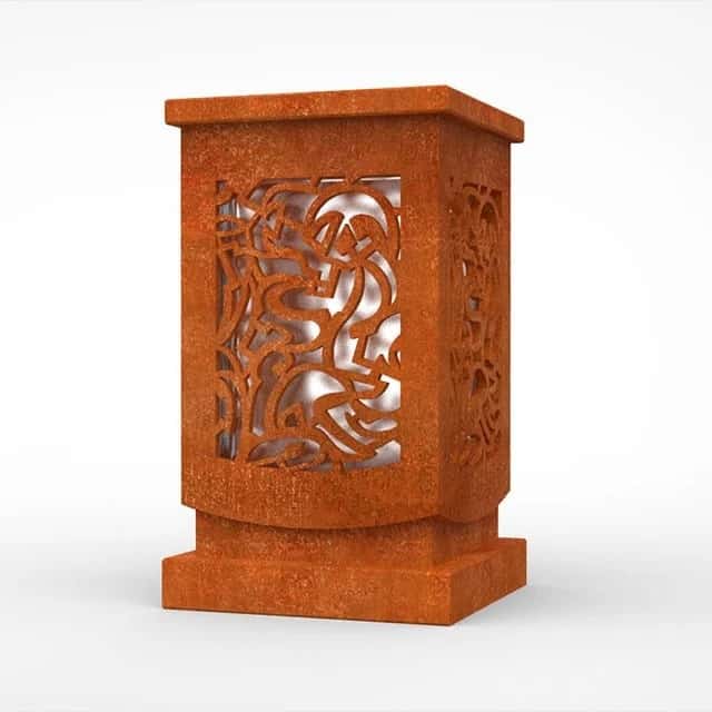 - Roestieke pracht: De cortenstaal graflantaarns worden gekenmerkt door hun roestige patina, wat een unieke, rustieke esthetiek oplevert die perfect past bij natuurlijke gedenkplaatsen.