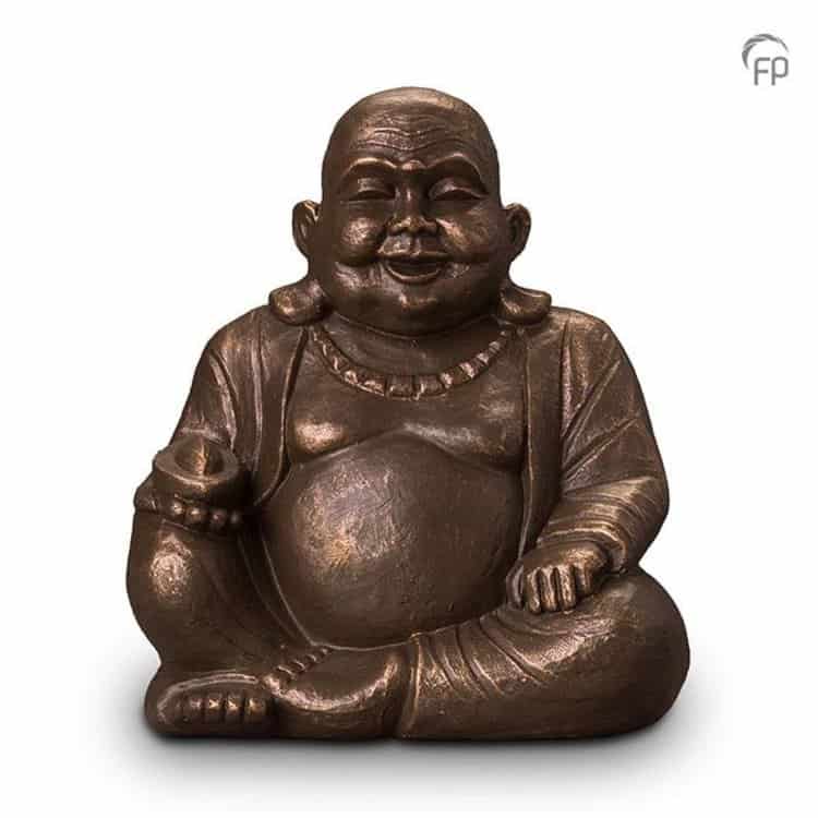 De urnen worden met de hand gevormd uit hoogwaardige klei. Tijdens het bakproces worden deze voorzien van een vloeibaar laagje brons, dat zich aan het keramiek hecht. Door de zeldzame details en doordachte symboliek worden de prachtige urnen niet direct erkend als urn, maar als kunstobject. Deze urnen in combinatie met de bijzondere bronskleur maken dat ieder kunstwerk past in elk interieur. Deze urn is ook verkrijgbaar met waxinelichthouder.