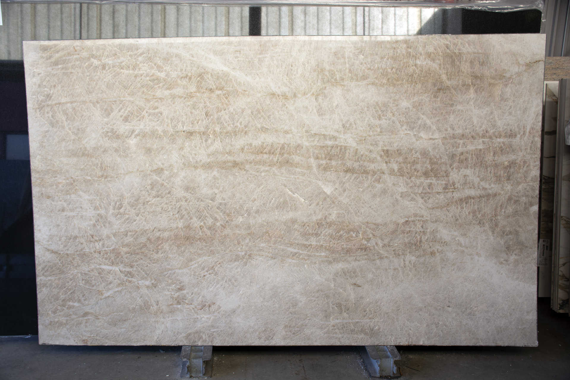 Taj Mahal kwartsiet heeft een warme kleurtoon, bestaande uit wit, crème, beige en taupe tinten. De kleuren lopen in brede golven en wervelingen over de zachte witte ondergrond van deze natuursteen. Taj Mahal heeft qua uiterlijk veel weg van een marmer, maar het is een oersterke kwartsiet die tegen een stootje kan. De Taj Mahal kwartsiet past perfect in natuurlijke interieurs. De rustige en warme kleurtonen maken deze elegante natuursteen zeer geschikt voor verschillende toepassingen, bijvoorbeeld in de keuken. De Taj Mahal is een zeer populaire natuursteen uit Brazilië door de combinatie van de kleur en de eigenschappen van het materiaal. Kwartsiet is ontzettend sterk en vlek- en zuurbestendig.