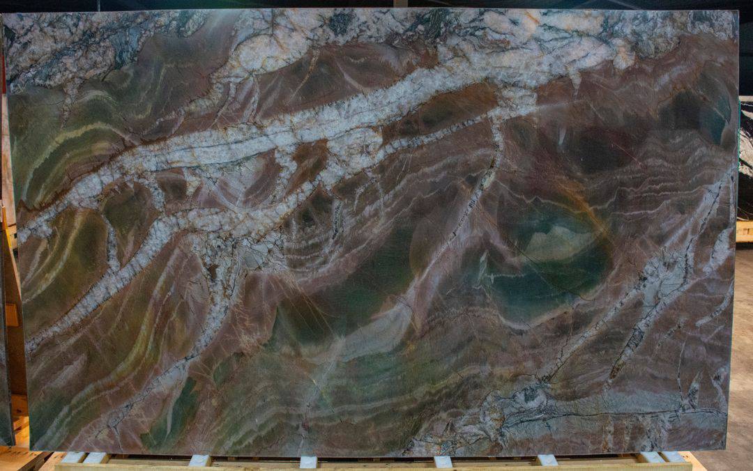 Volupia kwartsiet is een uitbundig scharlakenrood, rosé en bruine kwartsiet met doorschijnende kristallen aders die als rivieren door de steen stromen. Creëer dramatische en gewaagde projecten met dit verbluffende kwartsiet.